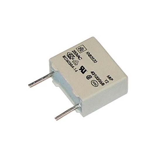 خازن پلیپروپیلن 2.2 نانو فاراد 250 ولت 20% خطا MKP سری Y2 سایز 4.3x9.5x13 میلیمتر، فاصله پایهها 10 میلیمتر، با تحمل دمایی 40- تا 100 درجه سانتیگراد